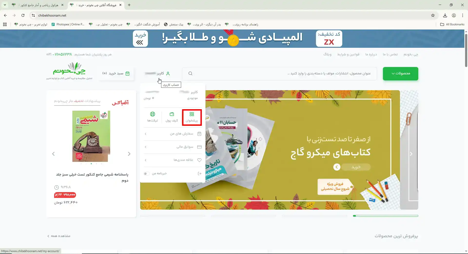 مرحله اول: با ورود به حساب کاربری، به بخش «پیشخوان» برو.