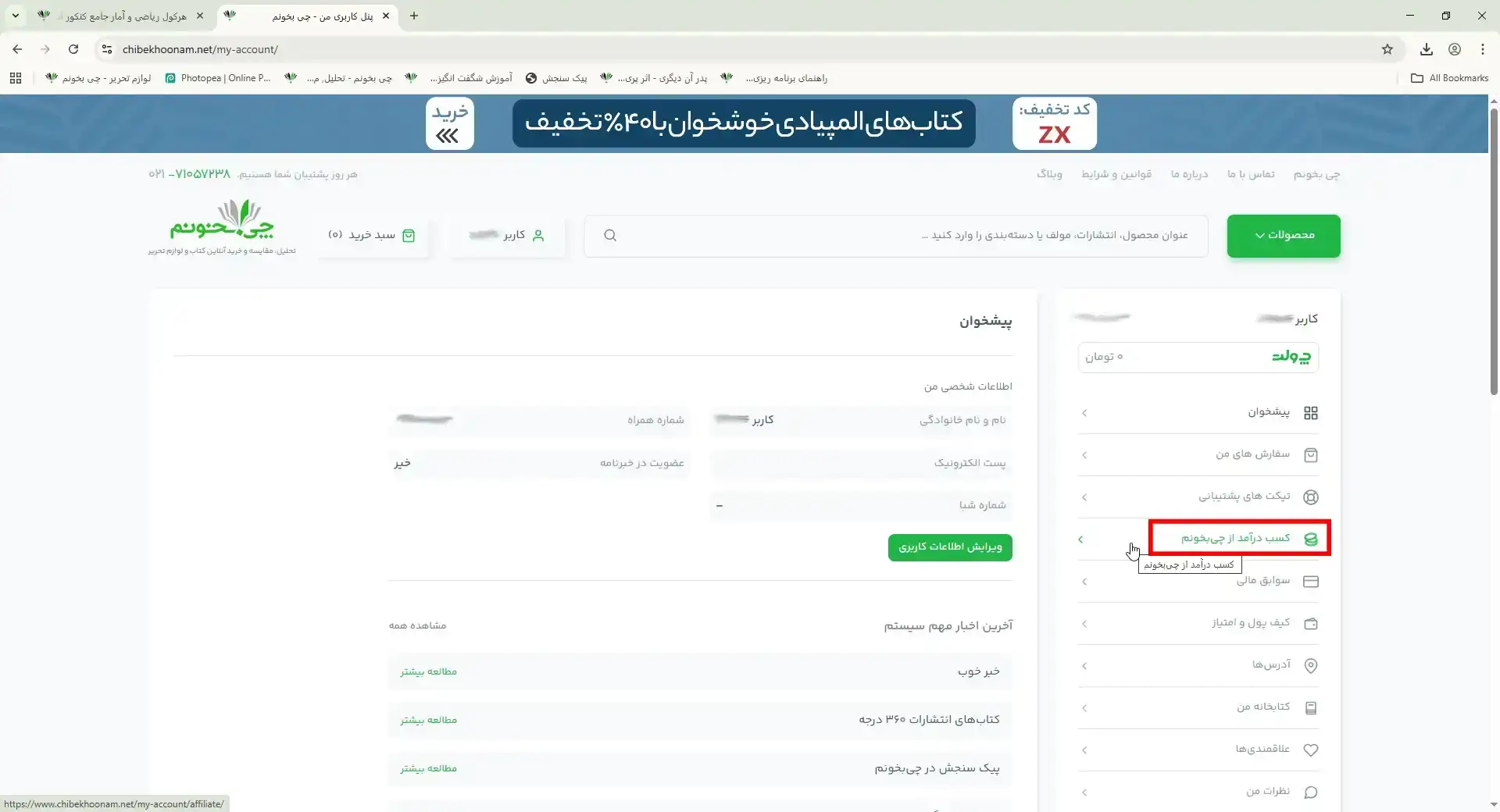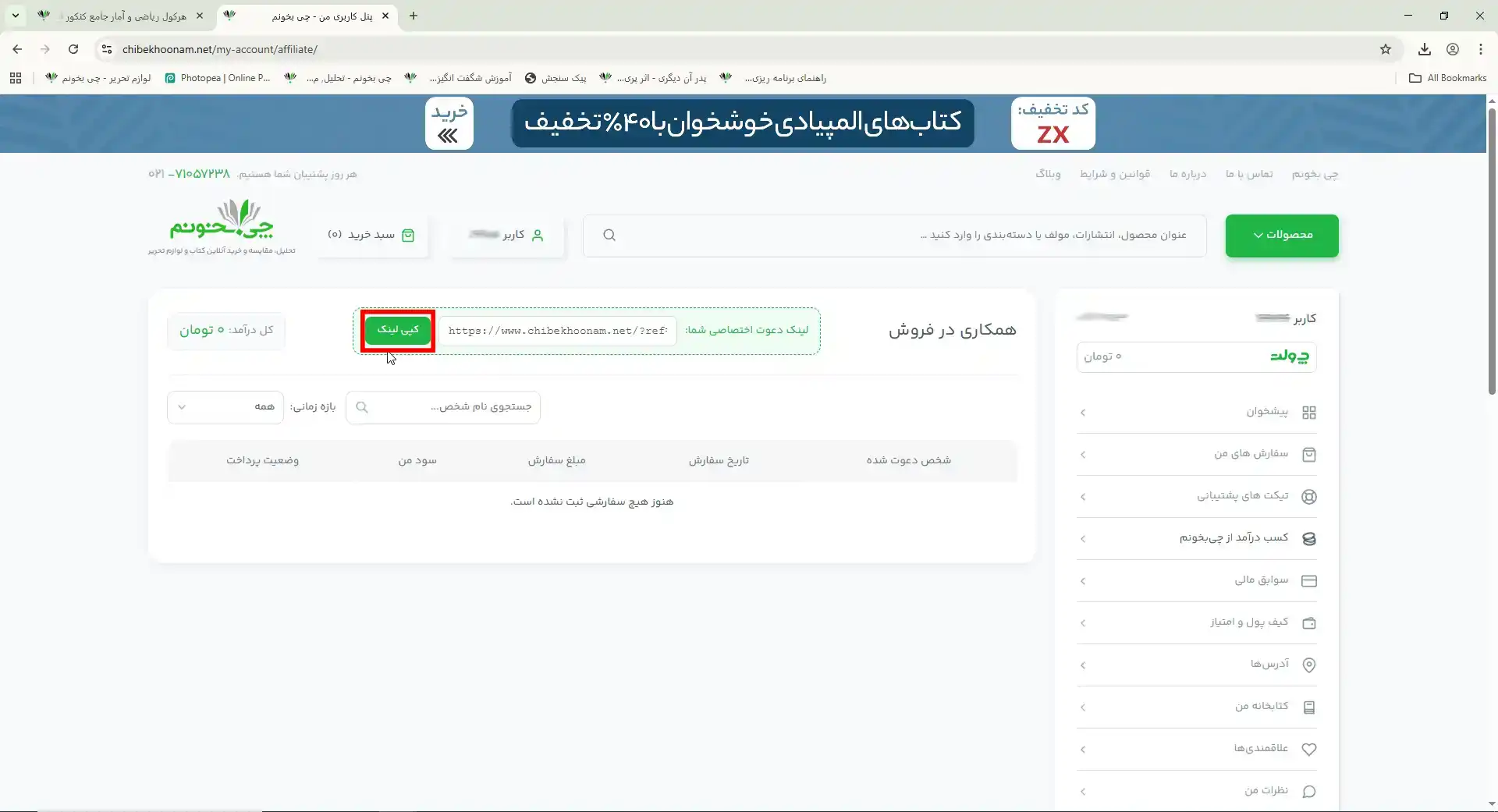 نحوه کسب درآمد از چی بخونم با استفاده از لینک اختصاصی پنل کاربری