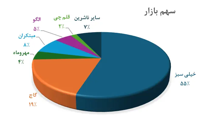 چه ناشرانی بیشترین سهم بازار را در چی بخونم دارند؟