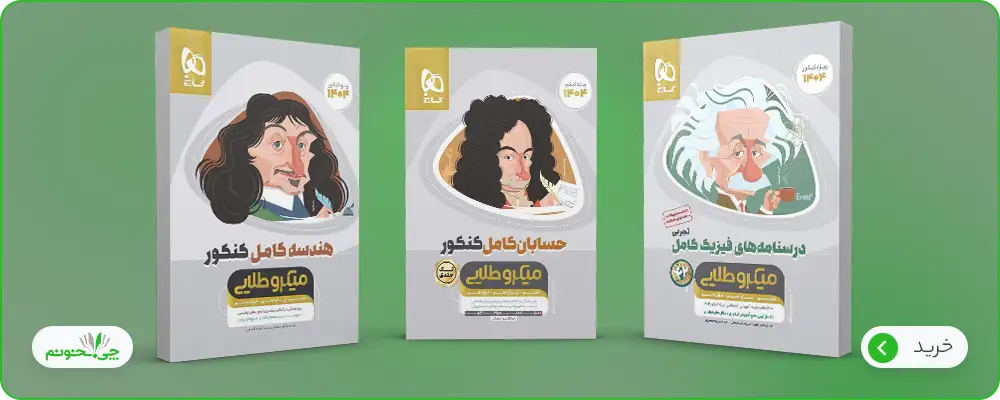 - مباحث مهمتر و مفصلتر مثل فیزیک کامل کنکور تجربی یا حسابان کامل کنکور، در دو جلد چاپ شدهاند؛ یعنی به درسنامههای جامع در یک جلد جدا و به تست و پاسخنامههای تشریحی مربوط به تستها هم در جلدی دیگر، پرداخته میشود.
