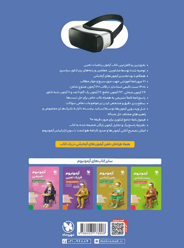 هرچند دانش آموزانی که برای ریاضی وقت مناسبی را صرف می کنند، در روزهای بعد از عید و منتهی به کنکور می توانند از همان آزمون ها برای مرور موضوعی استفاده کنند. در پایان 5 آزمون جامع و تالیفی قرار گرفته اند. در آزمون های جامع هم ضمن رعایت سطح کنکور، ترتیب تست ها هم بدرستی رعایت شده است.
