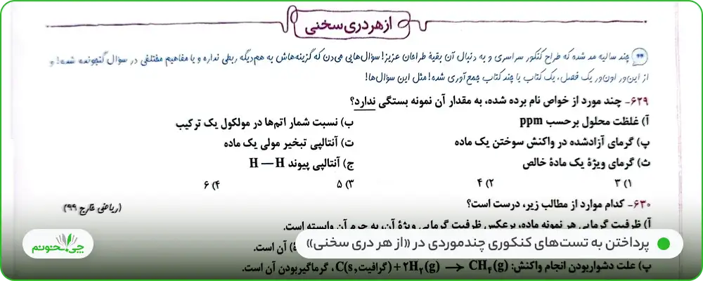 تغییرات کتاب شیمی یازدهم تست خیلی سبز چاپ 1404 نسبت به سال های گذشته