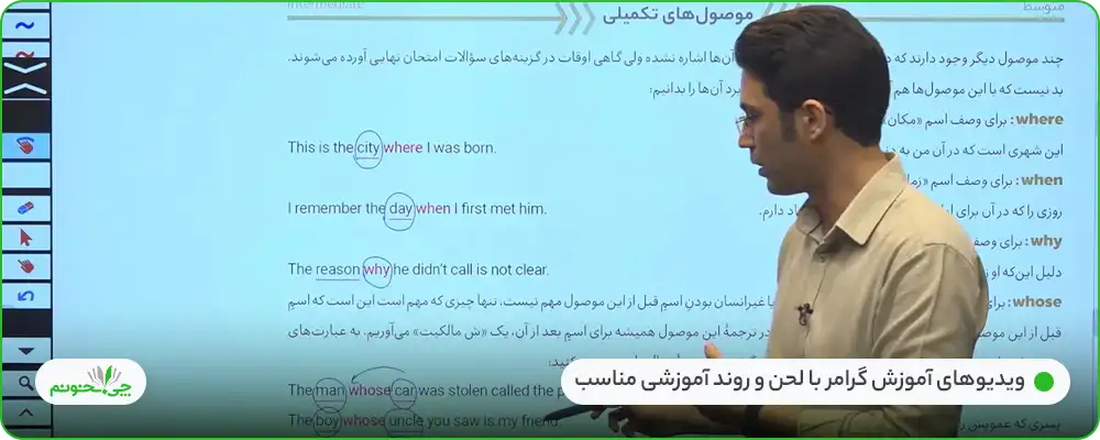 • شامل ویدیوهای آموزشیِ بامحتوا برای یادگیری گرامر هر درس به صورت تصویری