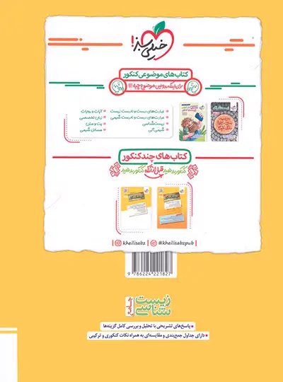 سلام این کتاب در اصل باید جلد سوم کناب های زیسن و در ادامه جلد های درسنامه و سوال می بود اما از این گذشته این کتاب حجم مناسب داره و با خوندن پاسخنامه ابهامی باقی نمیمونه و پاسخ صحیح رو میفهمید این کتاب درسنامه و تست نداره اما جداول جمع بندی در داخل کتاب وجود داره از فونت و گرافیک کتاب مثل باقی کتاب های زیست خیلی سبزه و قیمت نسبتا بالایی داره توصیه میکنم به جای پاسخ کلیدی از این کتاب هم استفاده کنید