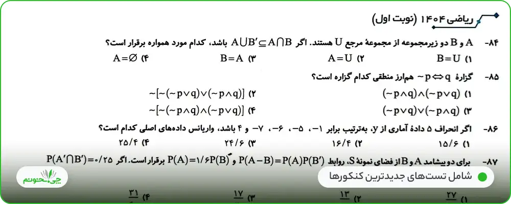 تست های کتاب تست آمار و احتمال 11 نشر الگو