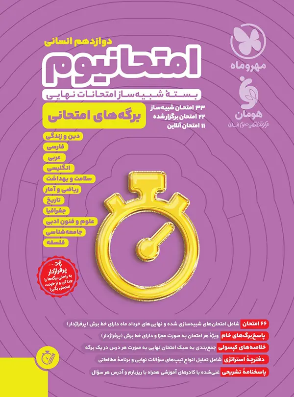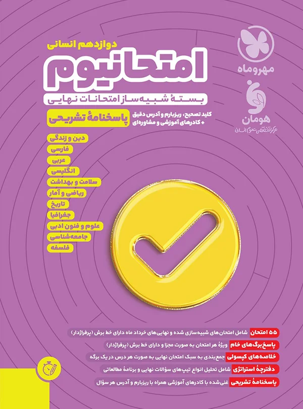 ریاضی و آمار دوازدهم, جغرافیا دوازدهم, تاریخ دوازدهم ایران و جهان معاصر, علوم و فنون ادبی دوازدهم, جامعه شناسی دوازدهم, فلسفه دوازدهم, فارسی دوازدهم, عربی دوازدهم انسانی, دین و زندگی دوازدهم انسانی, انگلیسی دوازدهم, سلامت و بهداشت