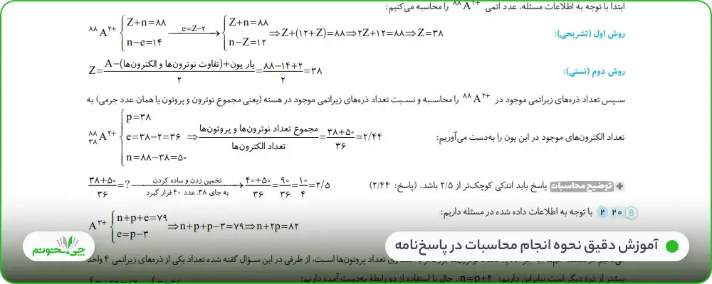 - حذف «فصل صفر» (برای آموزش محاسبات) و افزوده شدن کادرهای «توضیح محاسبات» به پاسخنامه