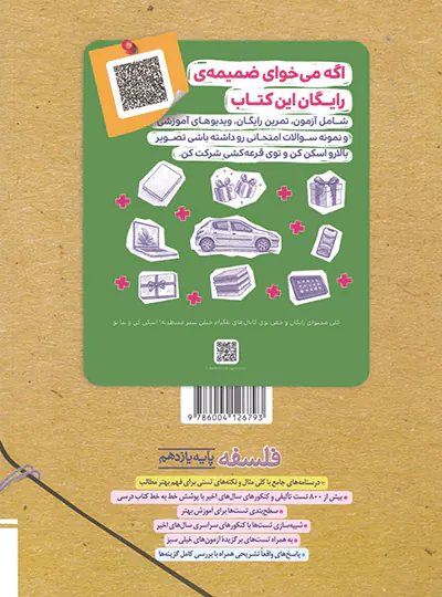 کتاب فلسفه یازدهم سری تست از خیلی سبز برای آشنا کردن دانش آموزان پایه یازدهم با سؤالات تستی فلسفه 1 طراحی شده است. در این کتاب با درسنامهای که بیشتر حالت خلاصه شده و مرتب شده متن کتاب درسی است، مواجهیم. سپس سؤالات تستی هر درس و در نهایت پاسخنامه تشریحی آنها آمده اند. پس از پاسخنامه تشریحی نیز پاسخنامه کلیدی قرار گرفته است. لحن کتاب همانند لحن کتاب درسی است. مؤلف در مقدمه کتاب، هدف کتاب را برطرف کردن ابهامات کتاب جدید فلسفه برای دانش آموزان مطرح کرده است، با این وجود به نظر میرسد درسنامه این کتاب بیشتر حالت خلاصه و طبقهبندی شده کتاب درسی باشد. در ادامه به بررسی کتاب تست فلسفه 11 ام خیلی سبز اثر احمد خداداد حسینی و امیر حسین رمضانی می پردازیم. کیفیت کاغذ و جلد کتاب فلسفه یازدهم خیلی سبز سفید و مناسب است. رنگ زمینه کتاب آبی آسمانی است. فونت مناسبی مانند اغلب کتابهای کمکدرسی در آن بهکار رفته است. البته کم بودن جذابیتهای ظاهری مانند تصویرها، شکلها و عکسها را میتوان بهعنوان نکته منفی ویژگیهای ظاهری کتاب برشمرد. شاید نیاز بود که در کتاب از تصاویر بیشتری استفاده می شد. بهتر است دانش آموزان از ابتدای سال تحصیلی از سؤالات و درسنامه کتاب فلسفه یازدهم تست خیلی سبز در کنار کتاب درسی خود بهرهمند شوند. این کتاب دارای حجم 108 صفحه و 450 تست می باشد. برای آشنایی با سبک و سیاق طراحی تست از درس فلسفه یازدهم، این کتاب برای اکثر دانش آموزان یازدهمی کافی است. مگر آن دسته از دانشآموزانی که به دنبال تمرین زیاد تستی باشند. نکات مثبت و خلاقانه که در درسنامه بهکار رفته و پاسخهای مفصل تشریحی آن از جمله مواردی است که به ارزش این کتاب اضافه میکند و یکنواختی و عدم تنوع در تست های این کتاب بهعنوان مهمترین ویژگی منفی آن برشمرده میشود. قبل از خرید اینترنتی کتاب فلسفه 11 ام خیلی سبز ادامه مطلب را بخوانید.محصولات مرتبط: کتاب کنکوریوم انسانی