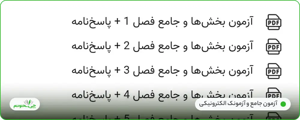 هر فصل این کتاب به چندین درس، تقسیم شده و برای هر درس، تستهایی نوشته شده است. در پایان هر بخش هم یک آزمونک جمعبندی بخش و یک آزمون جامع، نوشته شده که با استفاده از کیوآرکد قرار گرفته در صفحات مرتبط، قابل دسترسی هستند. پاسخ این آزمونها هم در همان فایل، قرار گرفته است.