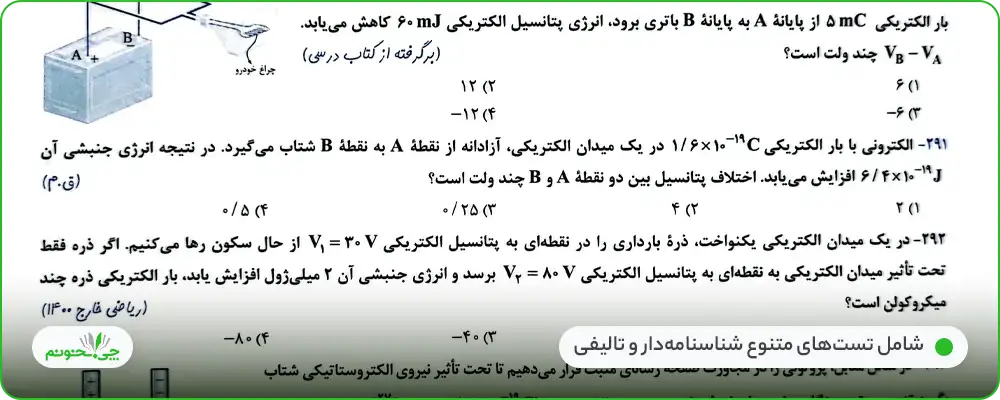 تست های کتاب فیزیک (2) تجربی تست خیلی سبز