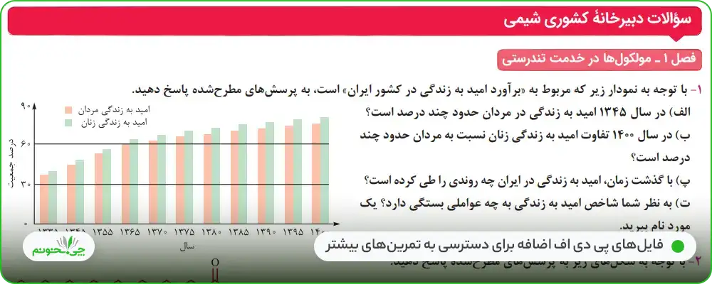 - اضافه شدن همه آزمونهای جمعبندی فصول و سوالات دبیرخانه کشوری شیمی به کیوآرکد ابتدای کتاب