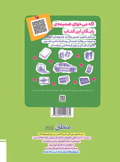 در مقدمه کتاب منطق دهم تست خیلی سبز، نویسنده تاکید میکند که سعی کرده است در این کتاب علاوه بر توضیح متن کتاب درسی، تحلیل بیشتر و مثالهایی را هم در کنار آن آورده و نمونه های بیشتری برای آنها ذکر کرده است. در ادامه به بررسی کتاب منطق دهم (10) خیلی سبز می پردازیم. در کتاب منطق دهم تست خیلی سبز ابتدا درسنامه درس اول سپس سؤالات تستی آن درس آورده شده است و در ادامه درس دوم شروع میشود و به همین ترتیب تا انتهای کتاب ادامه دارد و در آخر نیز پاسخنامه تشریحی همه تست ها آورده شده است. کتاب سؤالات تشریحی ندارد، لذا برای دانشآموزانی که قصد تمرین برای امتحانات پایانترم را دارند توصیه نمیشود اما برای دانشآموزانی که قصد تمرین تستی (بخصوص دانش آموزان پایه دوازدهم که در کتاب منطق ضعف داشتهاند) انتخاب مناسبی است. این کتاب در مجموع دارای 441 تست است و 132 صفحه است. قبل از خرید اینترنتی کتاب منطق دهم تست خیلی سبز ادامه مطلب را بخوانید.آموزش (درسنامه)