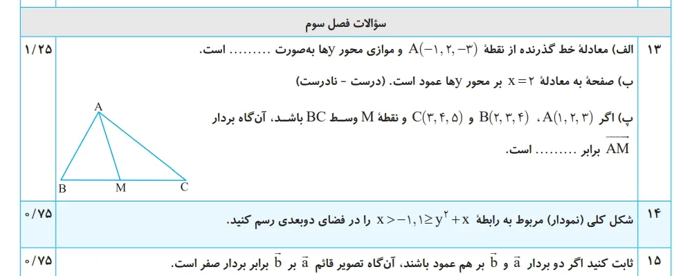نمونه سوالات امتحانی کتاب موج بیست هندسه دوازدهم نشر الگو