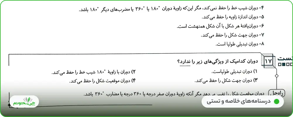 | فصل اول: دایره | درس اول: مفاهیم اولیه و زاویهها در دایره | 98 |