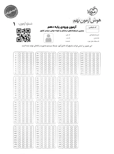 پاسخنامه تشریحی, پاسخنامه کلیدی, پاسخبرگ, راهنمای قبولی در آزمون تیزهوشان و نمونه دولتی