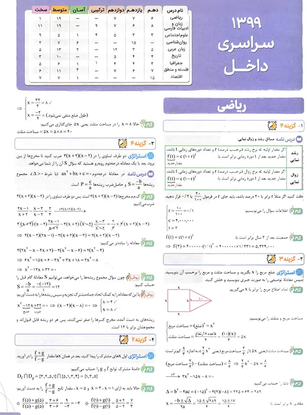 نویسندگان پاسخ سوالات، بخشی را هم برای نشان دادن میزان زمانگیر بودن هر تست، در نظر گرفتهاند. در کنار گزینه صحیح، یک ساعت قرار دارد؛ اگر برای حل سوالی، به زمان کمتر از استاندارد، نیاز داشتید، ساعت با صفحهای که بخشی از آن سبز شده و اگر سوال برای حل به مدت زمان متوسط یا زیاد نیاز داشت، به ترتیب با ساعتهایی که بخشی از صفحه آنها نارنجی یا قرمز شده، مشخص شده است.