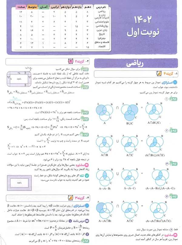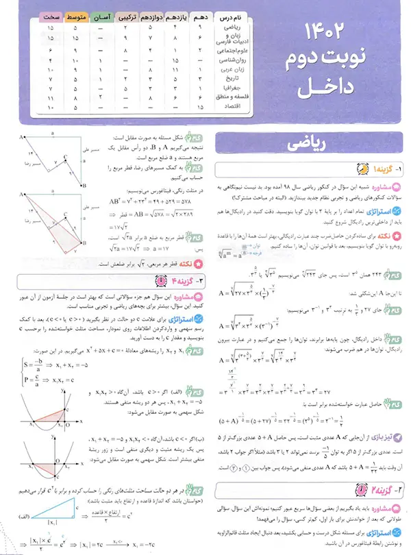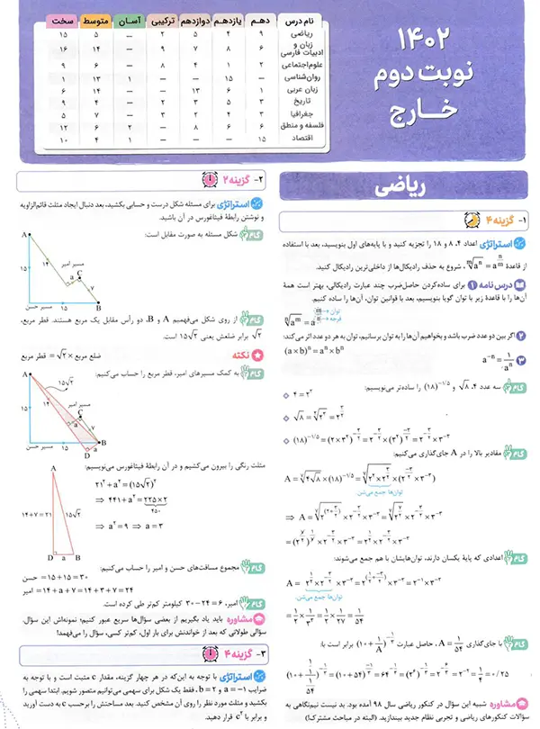 برای اطلاع از میزان سختی سوال، به رنگ گزینه صحیح که در کنار شماره سوال، قرار گرفته، توجه کنید؛ اگر گزینه مشخص شده سبز بوده، آن سوال آسان است و اگر نارنجی و قرمز بود، سوال مورد نظر، به ترتیب سطحی متوسط و سخت دارد.