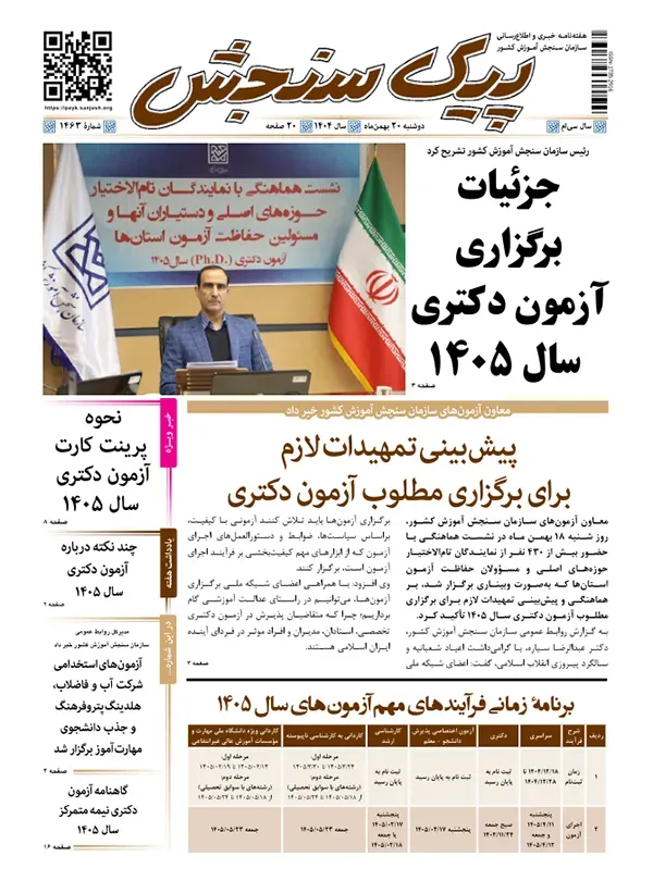 - رئیس سازمان سنجش آموزش کشور تشریح کرد: جزئیات برگزاری آزمون دکتری سال 1405