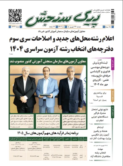 پیک سنجش شماره 1442، در روز دوشنبه 24 شهریور ماه 1404، منتشر شد. مطالب ارائه شده در این هفته‌نامه، به شرح زیر است: