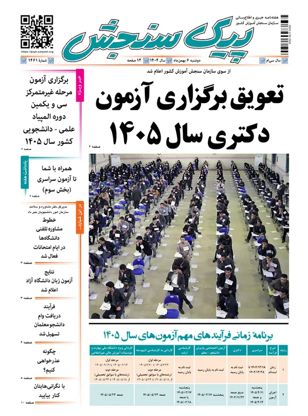 1. از سوی سازمان سنجش آموزش کشور اعلام شد: تعویق برگزاری آزمون دکتری سال 1405