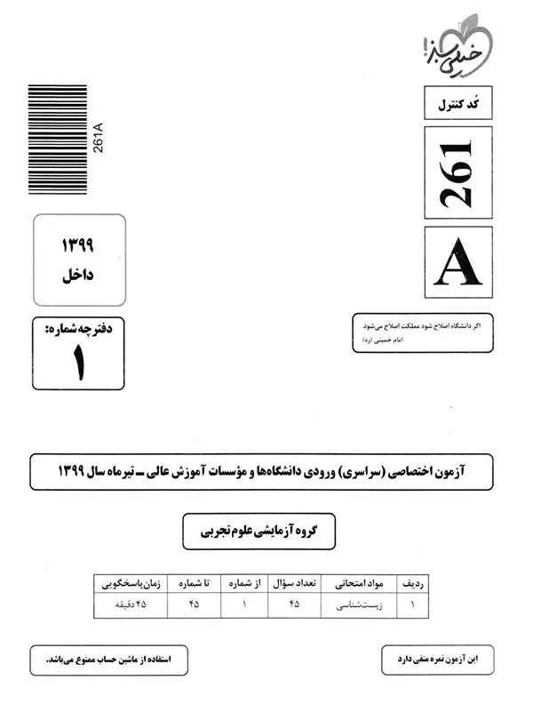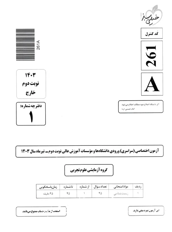 - برگه اطلاعات محصولی بسته چند کنکور رشته تجربی