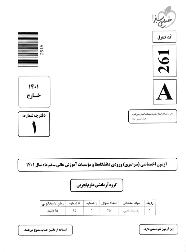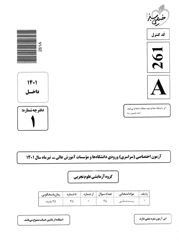 | 6 | کنکور سراسری تجربی داخل کشور سال 1401 | 155 |