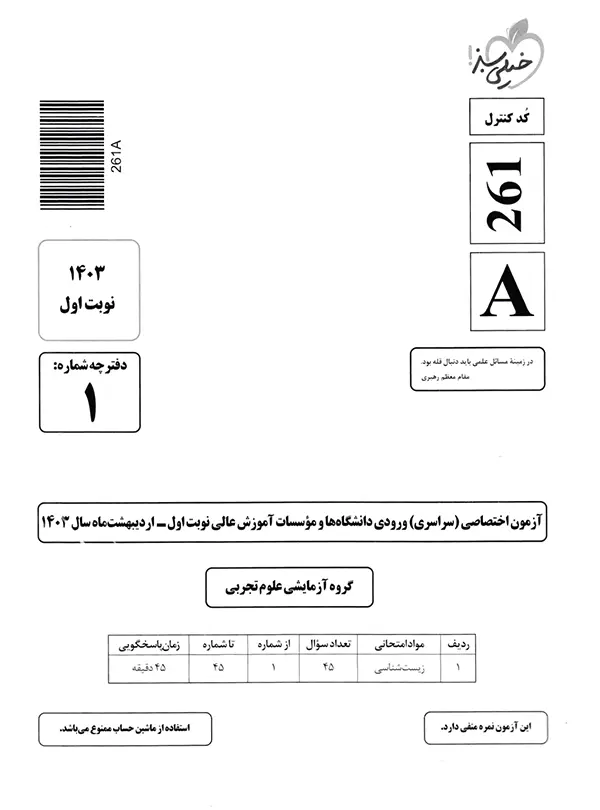 بسته شماره 1 چند کنکور رشته تجربی خیلی سبز شامل چه مواردی است؟- بستههای دفترچههای کنکور تجربی خیلی سبز + پاسخبرگ (هر یک شامل 3 دفترچه سوال و 3 پاسخ برگ است)