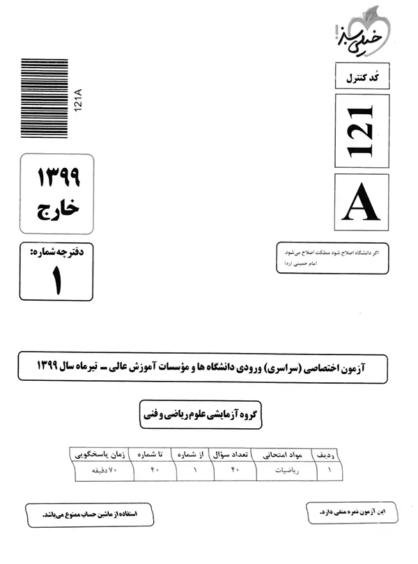 | 3 | کنکور سراسری ریاضی خارج از کشور سال 1399 | 105 |
