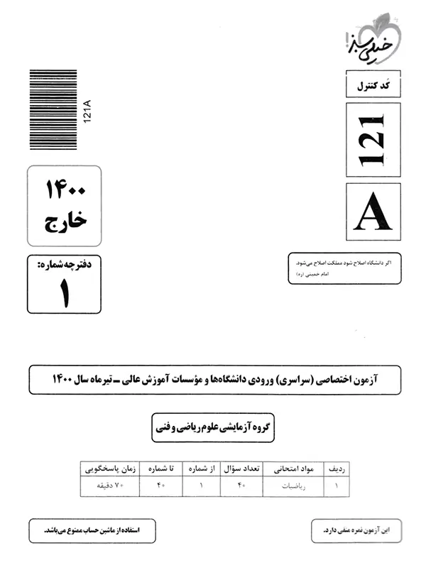 | 5 | کنکور سراسری ریاضی خارج از کشور سال 1400 | 105 |