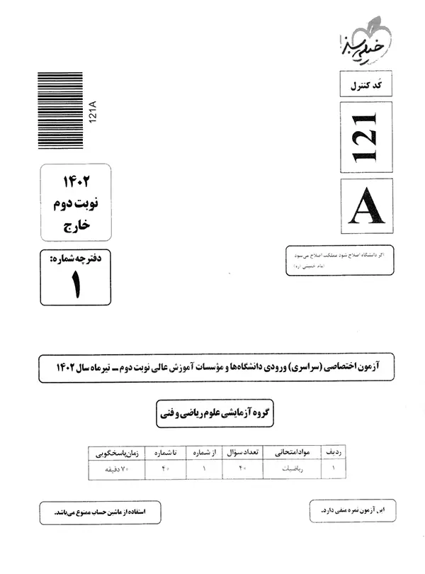 | 10 | کنکور سراسری ریاضی خارج از کشور سال 1402 نوبت دوم | 105 |