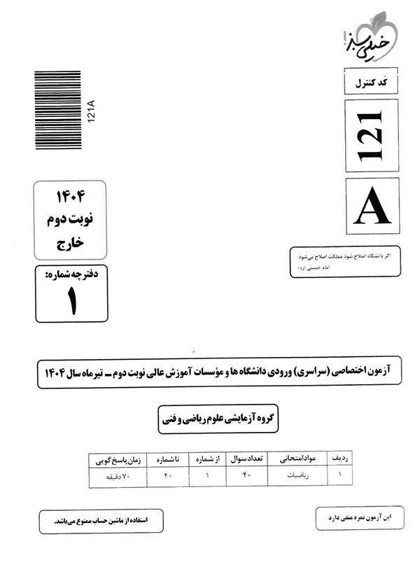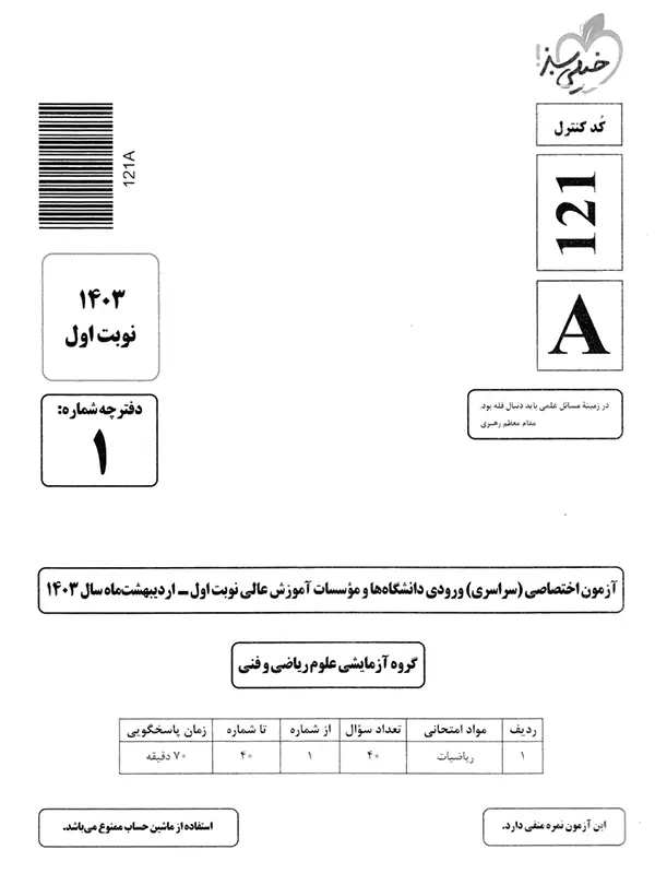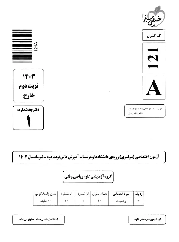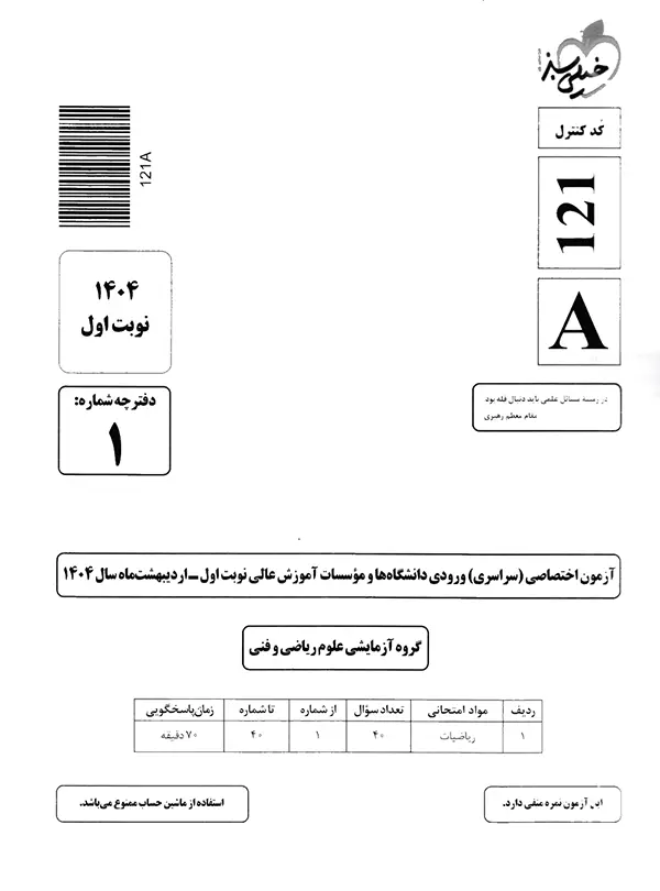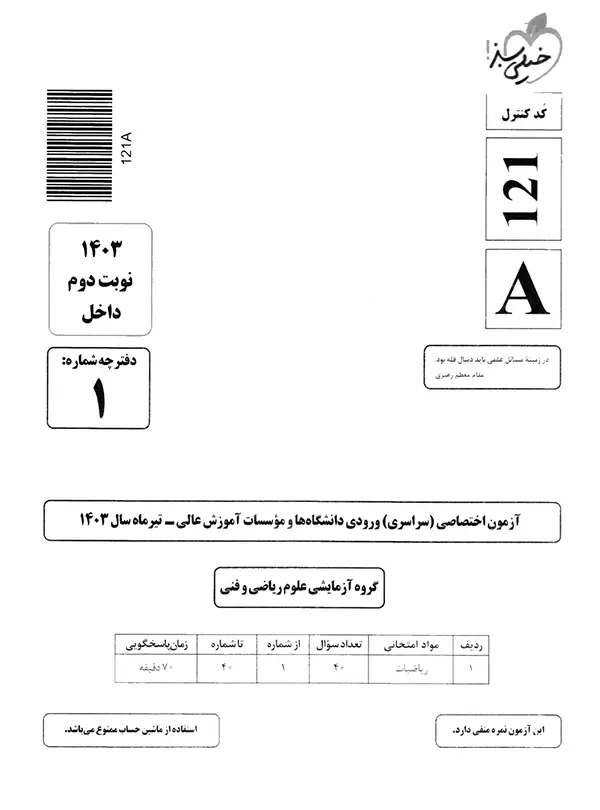| 11 | کنکور سراسری ریاضی سال 1403 نوبت اول | 105 |