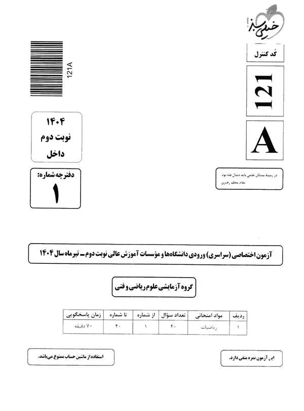 | 12 | کنکور سراسری ریاضی داخل کشور سال 1403 نوبت دوم | 105 |