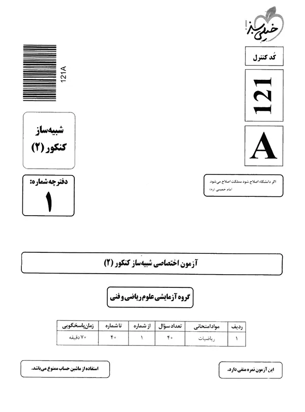 - برگه اطلاعات محصولی بسته چند کنکور رشته ریاضی