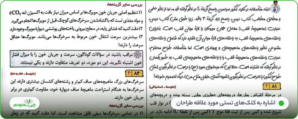 قدم دوم: در این مرحله باید به سراغ تستهای سطح بالاتر «مفهومی و استنباطی» بروید و پاسخهای تشریحی مربوط به آنها را به خوبی بررسی کنید. نکات مهمی که به نظرتان میرسد را هم به تستها اضافه کنید. (سطحبندی و ...)