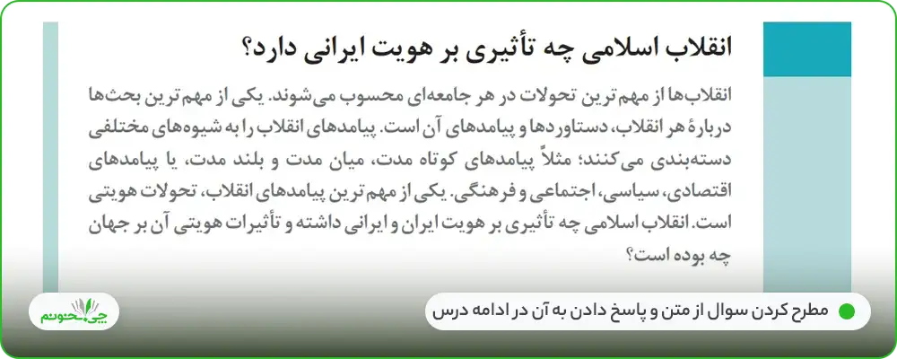 البته این سوالات، در میانه دروس هم نوشته شده و در ادامه، پاسخ داده شدهاند.
