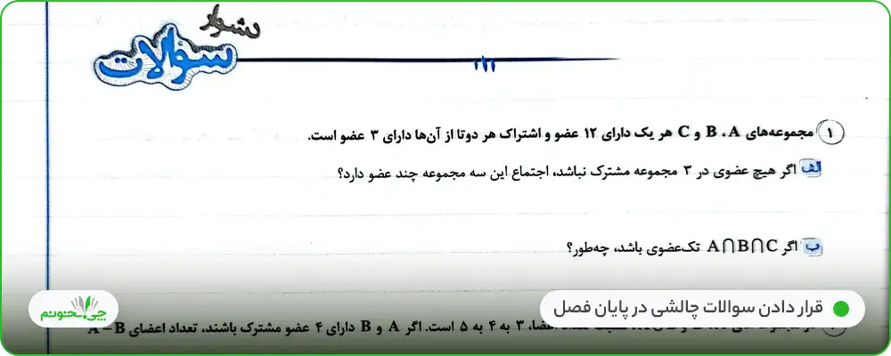 سوالات کتاب کار ریاضی 1 خیلی سبز